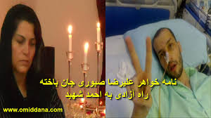 اینجانب خواهر شهید علیرضا صبوری میاندهی هستم و قصد دارم در این پیام حادثه ی اسفناک مجروح شدن برادرم در طی تظاهرات میلیونی روز ۲۵ خرداد سال ۱۳۸۸ و چگونه جان باختن وی بعد از گذشت حدود 3 سال را برای شما شرح دهم. شاید در این رهگذر بتوانم فصلی از فراز و فرودهای زندگی دشوار یک جوان ایرانی که با دست های خالی به خیابان رفت تا دنبال رای گمشده خود باشد اما هدف گلوله قرار گرفته است را بتوانم برای مردم کشورم و مردم دنیا که نگران حقوق بشر هستند بازگو کنم تا بدانند کسی که در خانه اش راهی برای درمان نیافت وقتی راهی آمریکا شد , به امید آنکه سلامتش را باز یابد ؛ چگونه در غربت و تنهایی و فشار های روحی و مادی چشم هایش را برای همیشه بست.