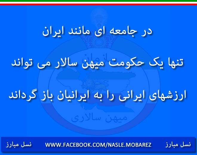 یک حکومت میهن سالار تنها برای فرهنگ ایران و ایرانی – خوشبختی ایران و ایرانی – تاریخ ایران و ایرانی تلاش خواهد نمود . تنها یک حکومت میهن سالار قادر به حذف دین تازیان از ایران و ذهن ایرانیان خواهد بود .