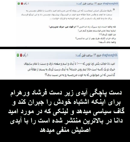 به تازگی یکی از سایتهای وابسته به بازجویان وزارت اطلاعات به نام (بولتون نیوز) مطلبی بر علیه اینجانب (امید دانا) به استناد ضبط صدایی که فرشاد ورهرام توسط زیردستانش انجام داده بود منتشر کرد.