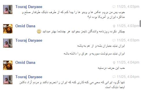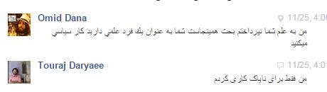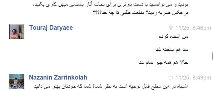 در چتی که اینجانب و بانو نازنین زرین کلاه با آقای تورج دریایی داشتیم ایشان به دو نکته مهم اعتراف نمودند