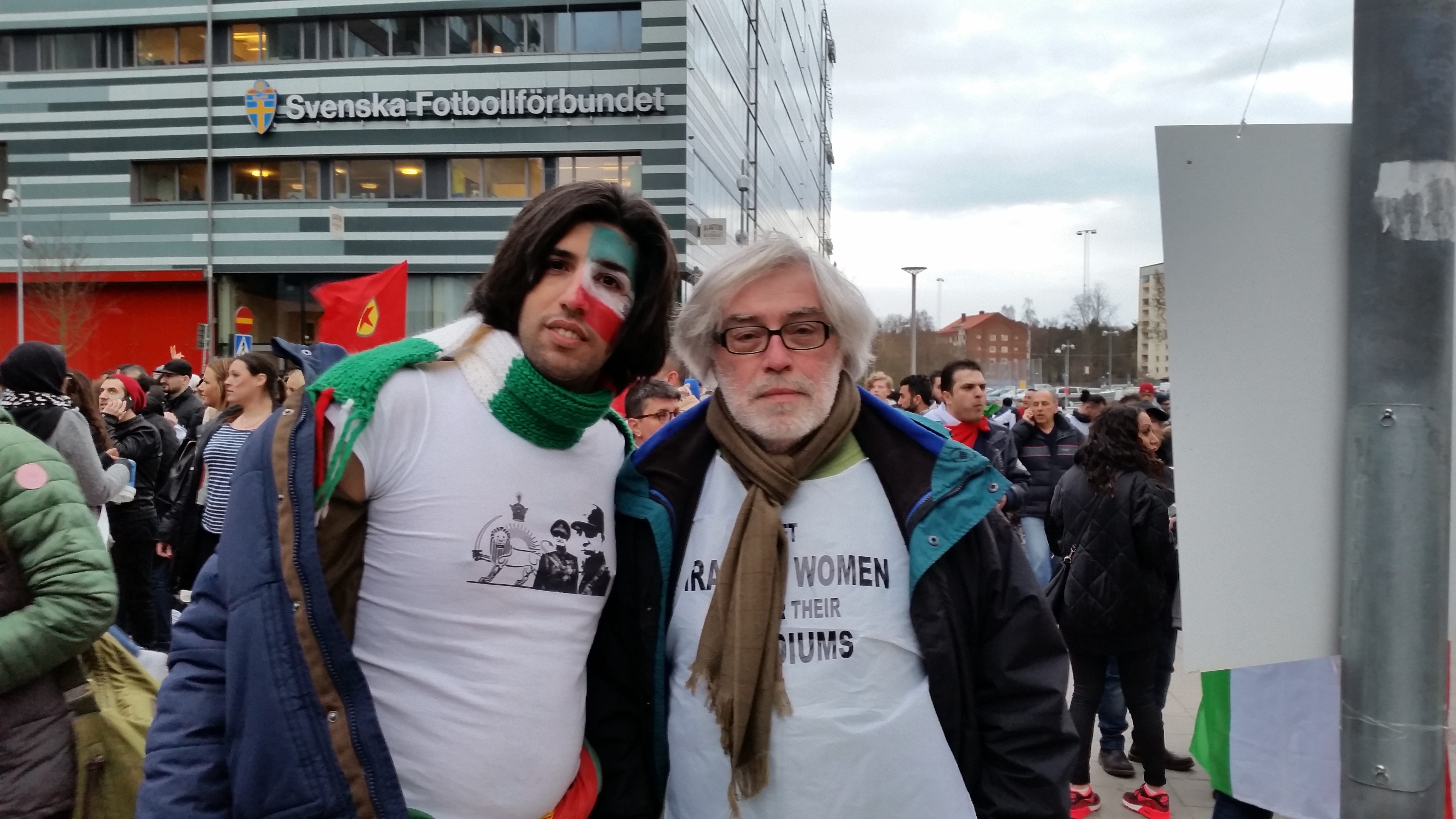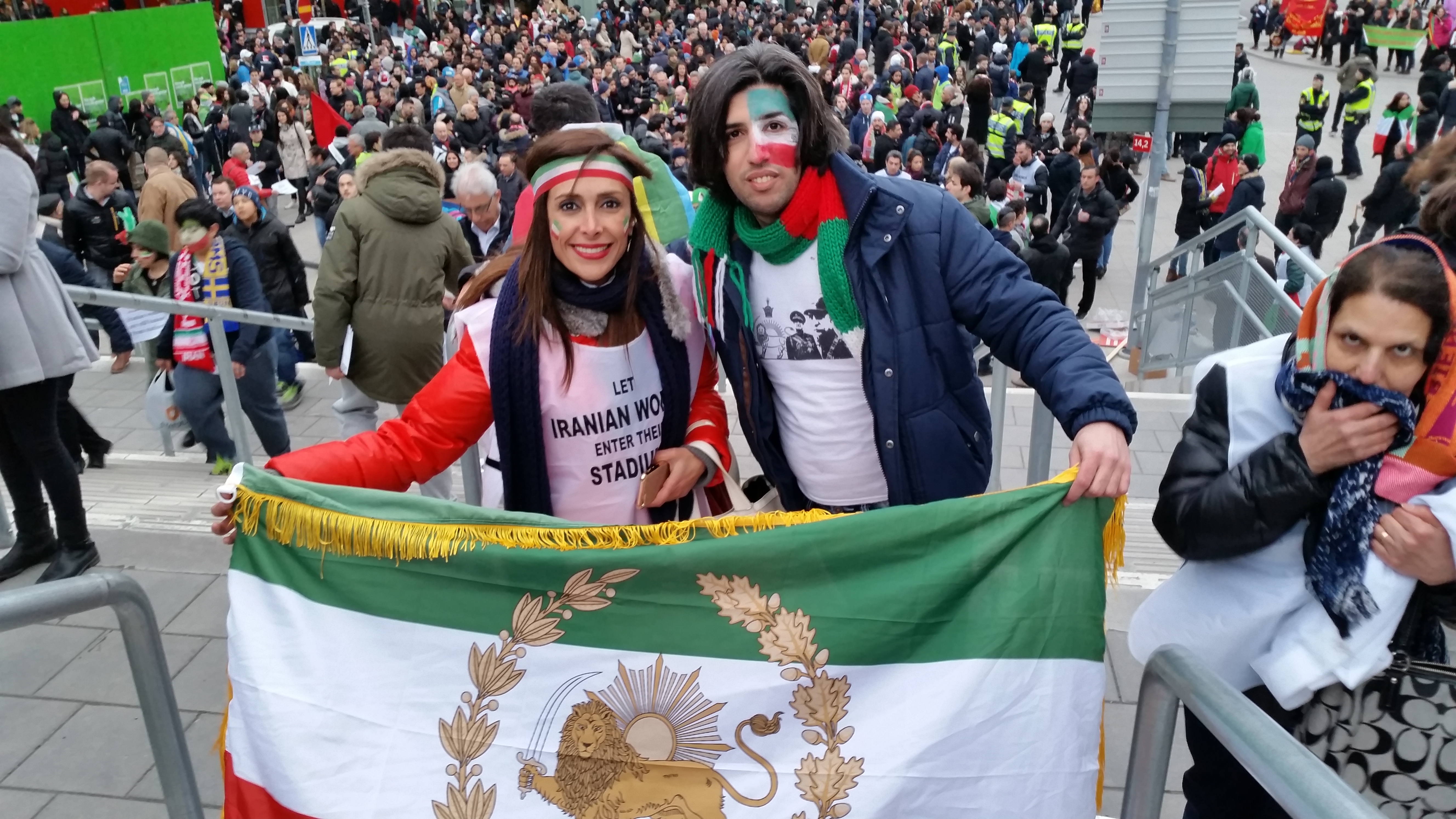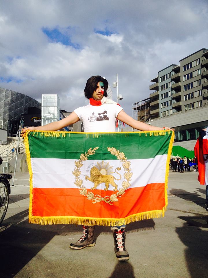 همین بس وقتی که سرود جمهوری اسلامی از بلندگو ورزشگاه پخش می شد همه مردم یک صدا ای ایران خواندند، و پرچم بزرگ شیروخورشید را در وسط جایگاه تماشاگران دقیقا ربروی دوربین برافراشته کردند و پس سرود دوربین ورزشگاه که از تلویزیون 4 سوئد به صورت مستقیم بر روی آنتن می رفت برای 7 ثانیه روی پرچم بزرگ شیروخورشید زوم کرد…