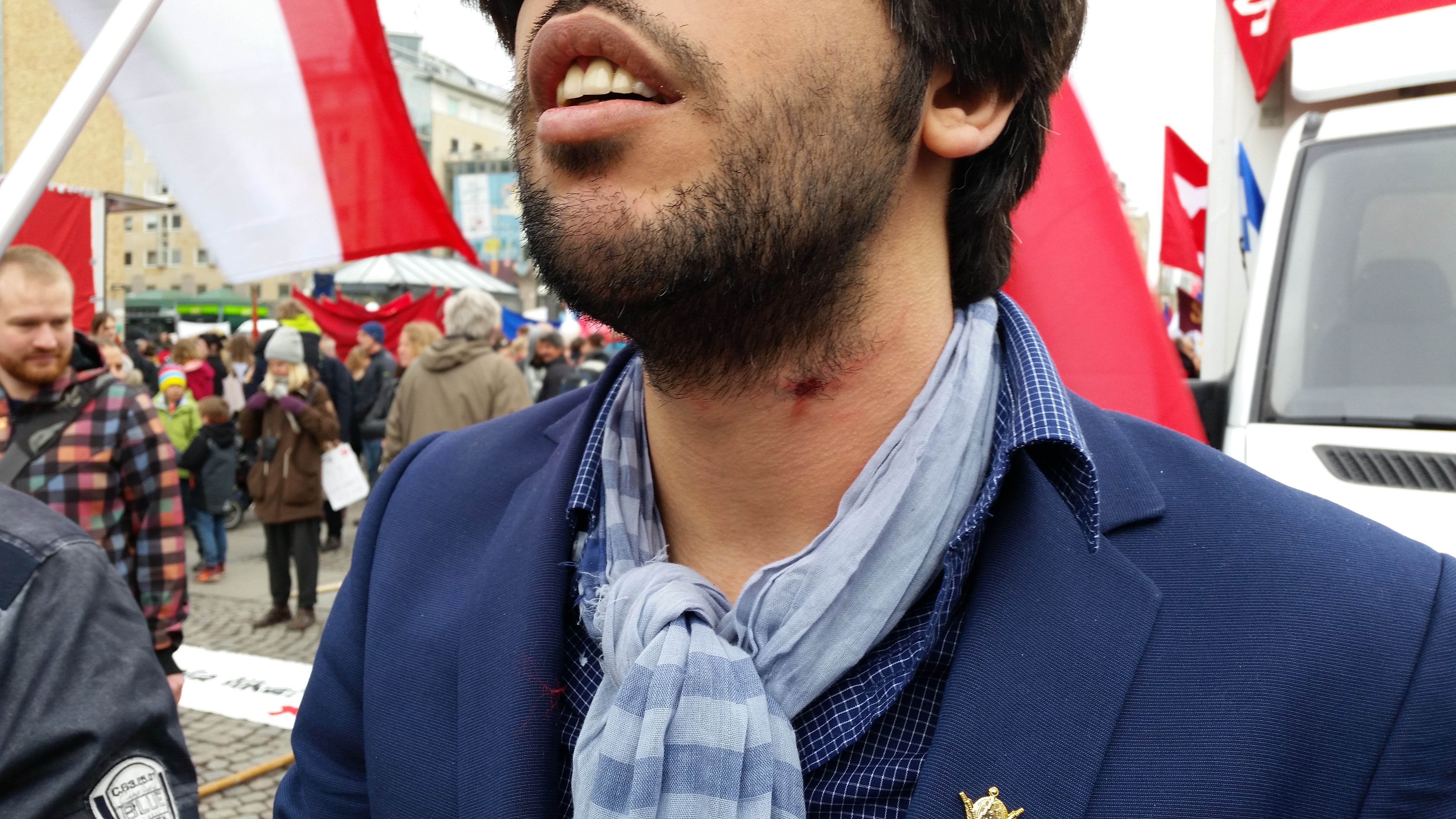 از آنجایی که در سالهای گذشته فاشیستهای کمونیستی به ما حمله می کردند امسال نیز ما آماده بودیم تا به ما حمله کنند و از همان ساعت اولیه حضور ما حملات وحشی های کمونیست و لایه های مختلف چپ مغزها به ما برای ترک محل آغاز شد.