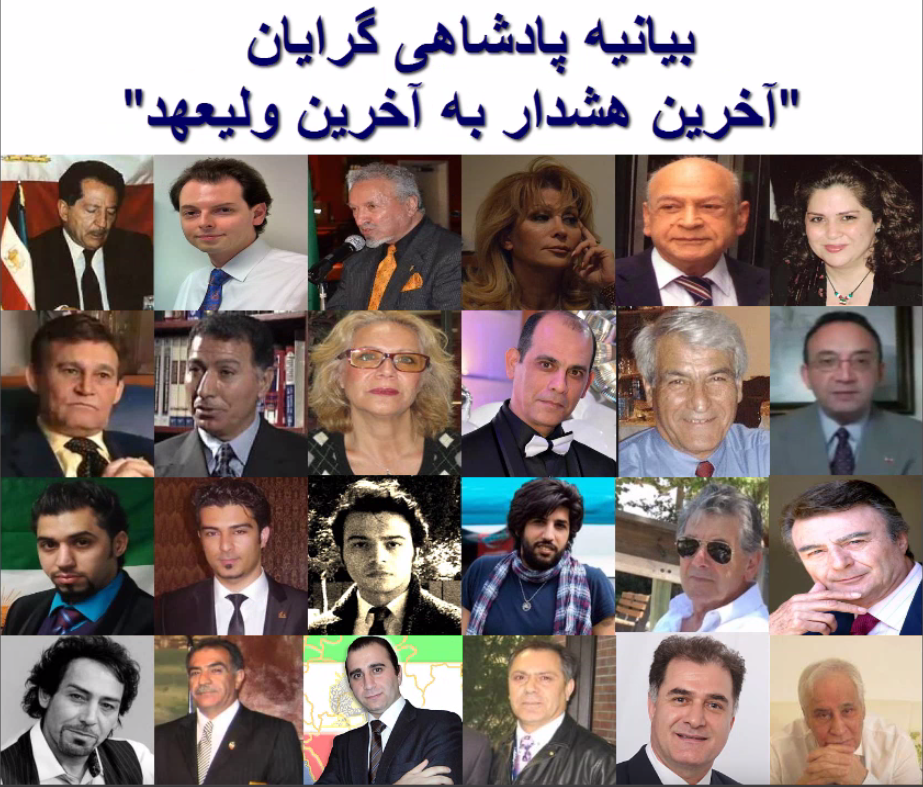 و اینک ما شماری از کنشگران و کوشندگانِ ملیباور که با سنجه دانستن انتخاب شهروندان ایران، ساختار پادشاهیِ مشروته (constitutional monarchy) به پادشاهیِ وارثِ سنتیِ پادشاهی پهلوی را، بهترین شکلِ دولت (state)، برای ایران دانسته و این میراثِ نوینِ نهادِ کهن پادشاهی را بهتعریف، بیش و پیش از هر چیز، در خدمت پاسداری از هستیِ ایران و اصول ملی، میشناسیم؛ به حضرتعالی رضا پهلوی دوم، آخرین ولیعهد تاریخی ایران بهجدّ، و برای آخرین بار هشدار میدهیم، تا از مواضعِ ضدِّملی خود برائت جسته و کلیهیِ کنشها و اقدامات خود را بهطورِ کامل به اصول و چهارچوب ملی ایران متعهد گردانید. بی گمان، پیکار برای شکستِ سدِّ ۳۷ ساله رژیم جمهوری اسلامی و برپاییِ یک نظام مردمسالار در چهارچوب بیانیهی جهانی حقوق بشر، جُز در پایبندی به چهارچوب ملی ایران امري ست نامتصور. امروز بر ما ست تا مبارزهیِ خود را متوجه رژیم سیاسی ایران گردانیم و بهطبع، هیچ خوشایندمان نی ست که مبارزه با جمهوری اسلامی را به اولویتي ثانی، در خدمتِ رویارويی با خطرات و دشمنان وجودی ایران واگردانیم. چنان که دشمنی با جمهوری اسلامی هیچگاه به جنگ تا آخرین نفس در برابر رژیم بعث عراق اولویت نیافت. ملت ایران همان ملت است، و آن سویِ چهارچوب ملی ایران چه در نظر و چه در عمل، خواه آل سعود یا شیخ نشینان باشند، خواه جناحهایي از اسرائیل و نئوکانها در آمریکا، خواه احزاب تروریستی در مرزهای ایران باشند و خواه شخصیتهایِ ریز و درشت در هر نقطه از گیتی، ملت ایران را تفاوتي نیست. پافشاریِ حضرتعالی بر ادامهیِ رویکردهای خطرناک و ضدِّملی یک دههیِ گذشته، نه تنها مشروعیت وجودیتان در نزدِ باورمندان به پادشاهیِ مشروته بهعنوانِ ولیعهدي تاریخی را نابود می کند؛ که حضرتعالی را در کسوت شهروندي ساده، برکنار از نام خانوادگیتان، «پهلوی»، به جرگهیِ دشمنان وجودی ایران در پیشگاه یکایکِ ایرانیانِ پایبند به اصول ملی میافزاید. ایرانیاني که وجب به وجب این خاک و آب را خون دادند تا از پسِ بیش از سه هزار سال، مردمانِ این کرهیِ خاکی آبی، همچنان میان کاسپین تا شاخاب پارس را چنین نامند؛ ایران!